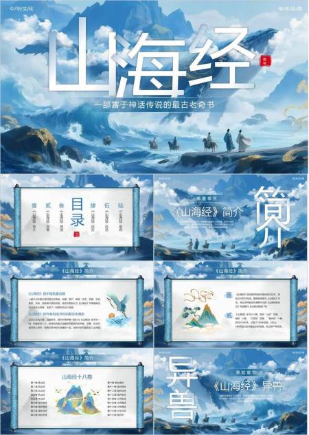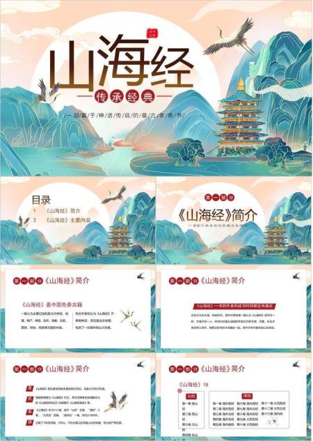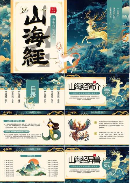 凤凰火焰纹山海经介绍PPT模板
