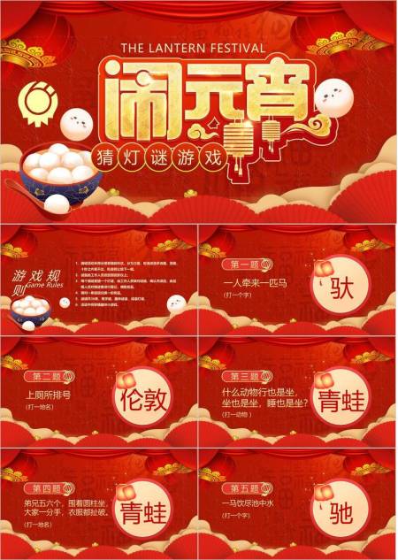 镜面文字汤圆扇形元宵灯谜游戏PPT模板