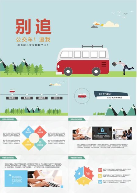 扁平化公交车主题PPT