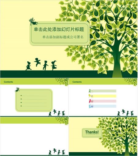 卡通小树清新PPT模板