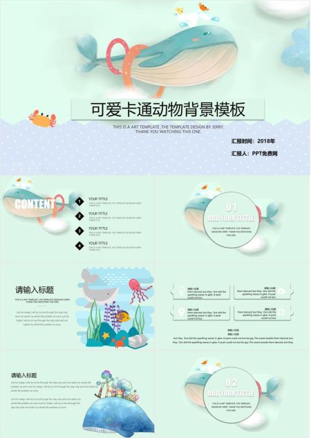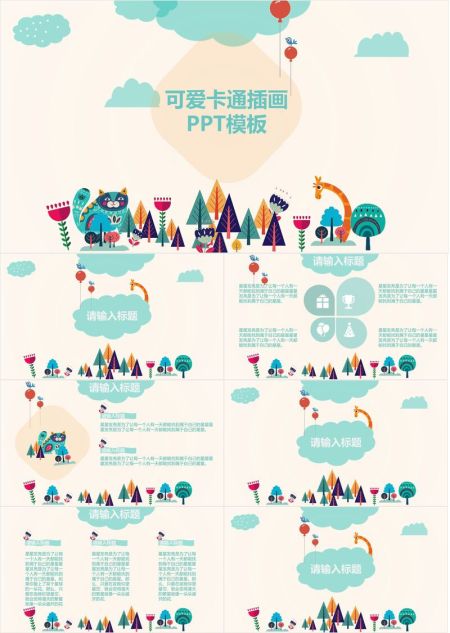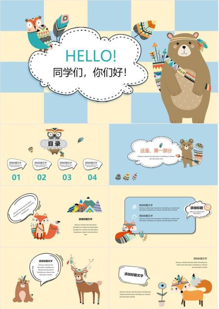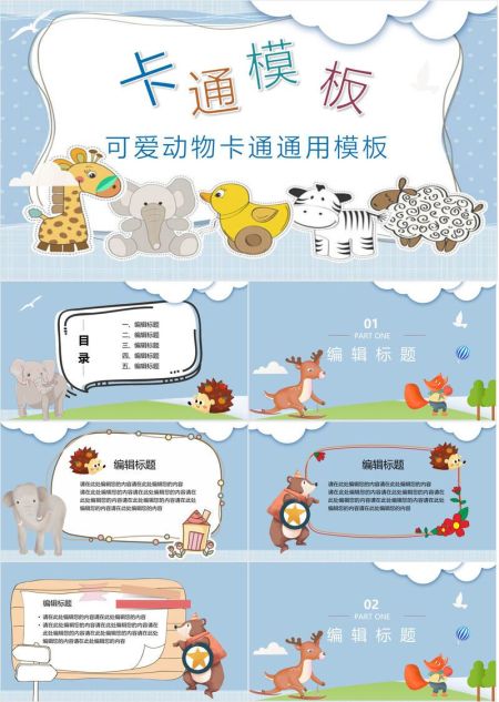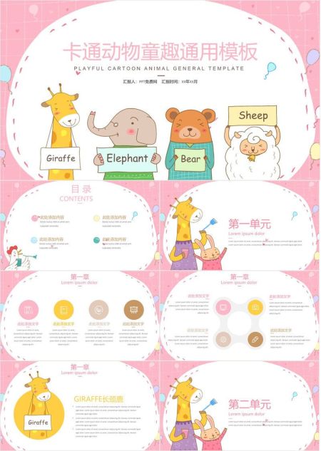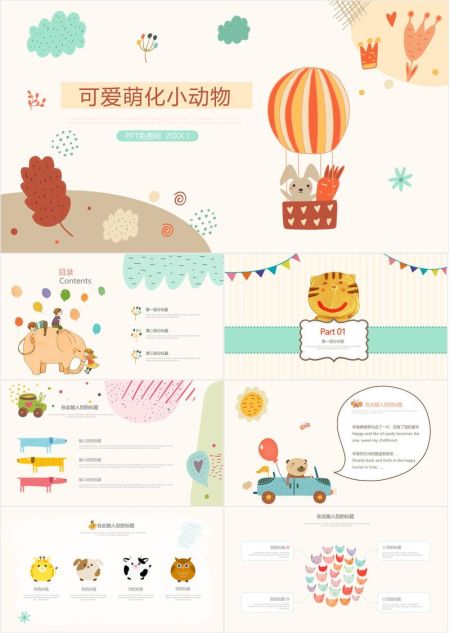可爱卡通动物唯美PPT模板