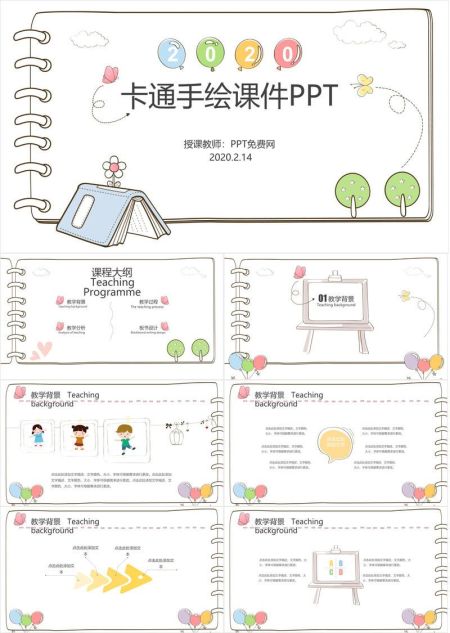 笔记本卡通手绘PPT模板