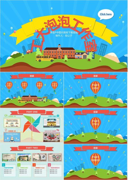 卡通热气球儿童课件PPT