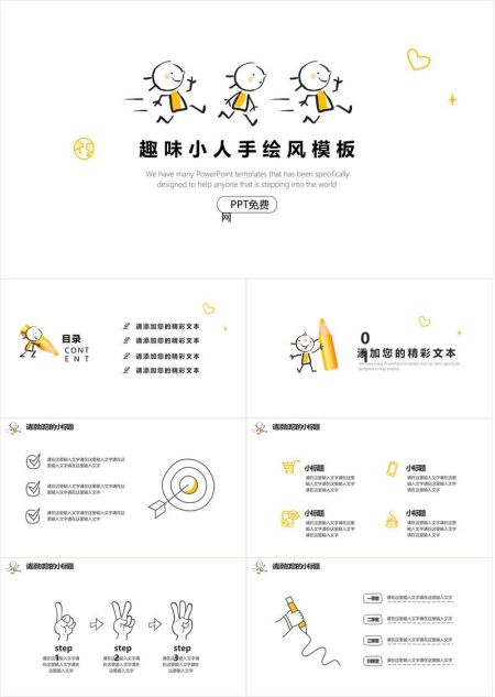 手绘小人趣味风PPT模板
