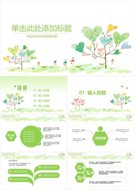 心形小树小清新PPT模板