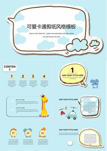 可爱卡通风格设计PPT模板