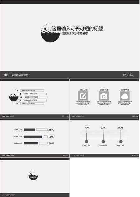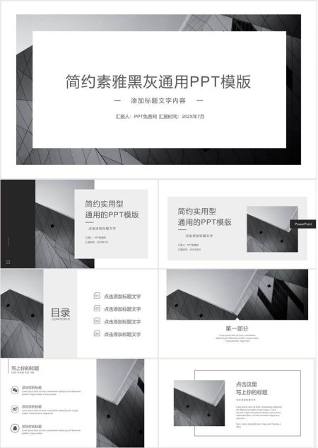 灰黑极简通用PPT模板