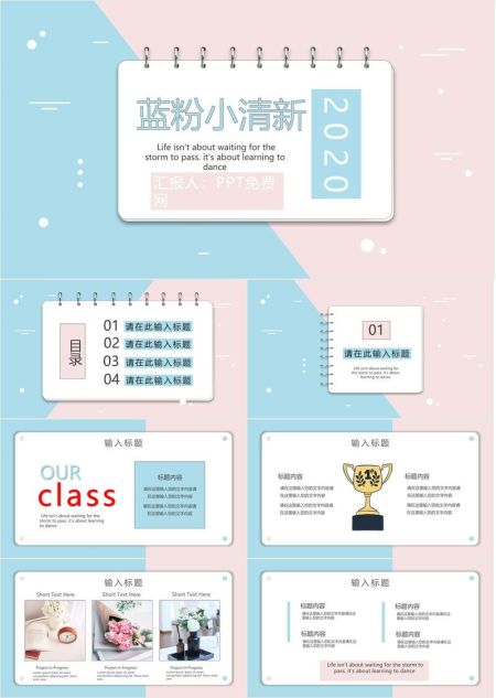 翻页卡片蓝粉清新PPT