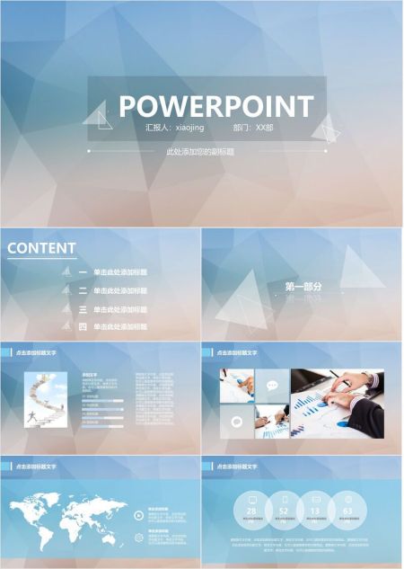 淡雅低面多边形PPT模板