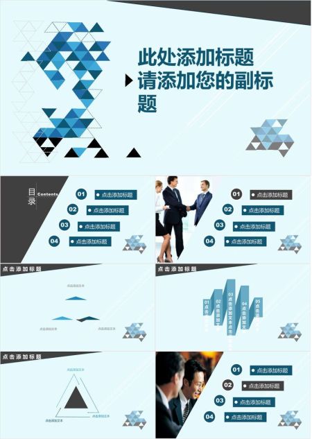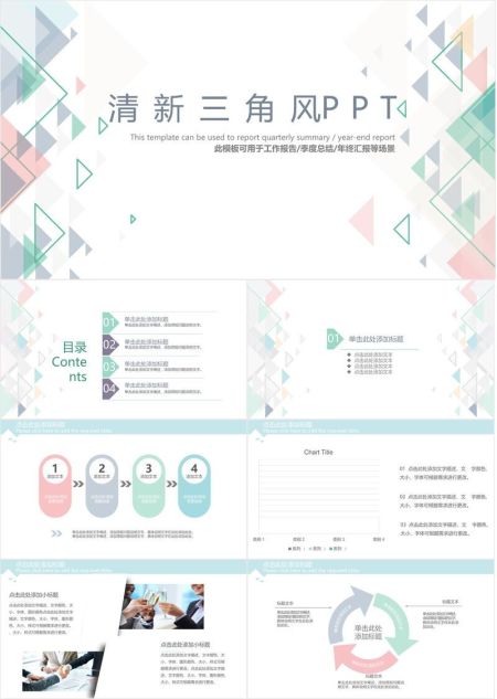低饱和三角拼接清新PPT