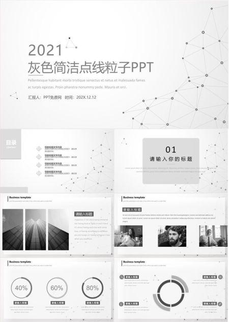 极简点线构成PPT模板