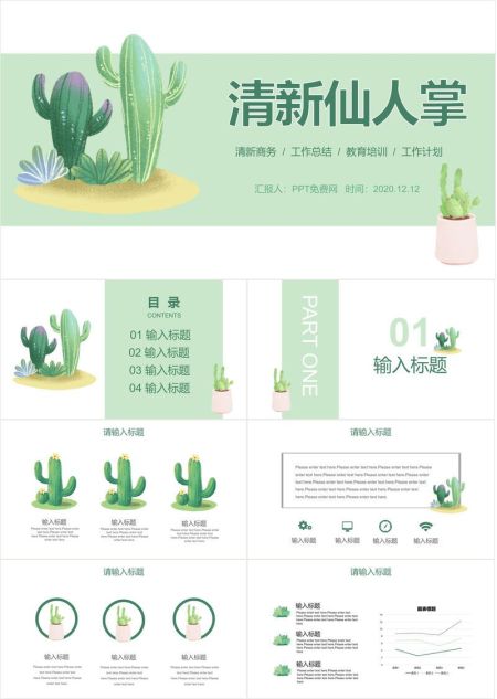 水彩仙人掌清新PPT模板