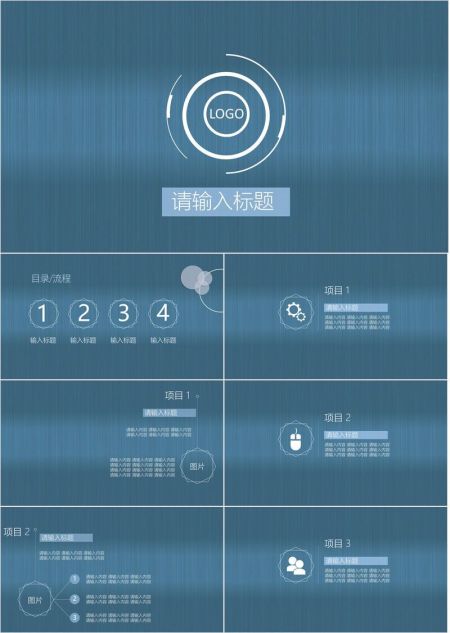 蓝色拉丝质感PPT模板