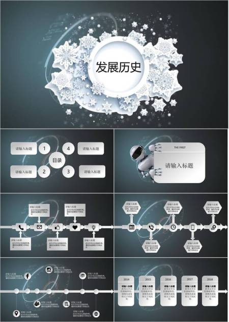 圆形遮罩键盘平板背景企业发展时间轴PPT模板