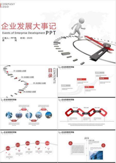 3D小人时钟阶梯企业发展动态时间轴PPT模板
