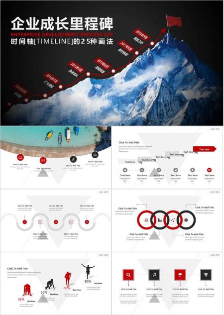 冰山攀登路线图红色旗帜企业成长里程碑时间轴PPT