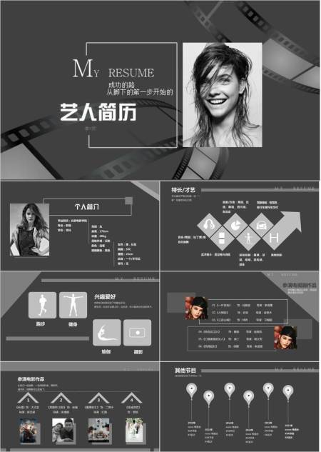 胶片回响复古风艺人介绍PPT模板