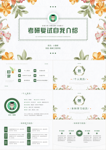 学术版大学生求职简历PPT模板(1)