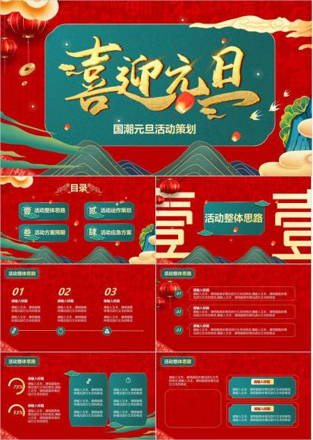 国潮喜迎元旦活动策划PPT模板