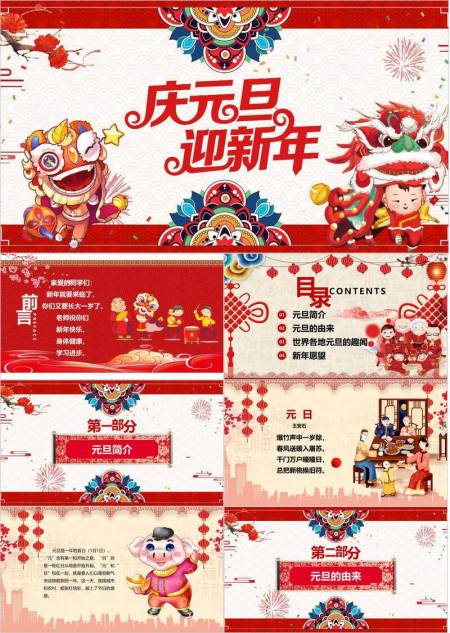 舞狮猪过大年节日宣传PPT