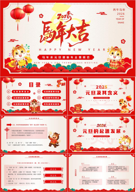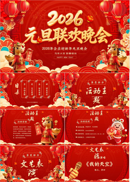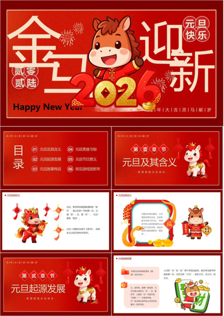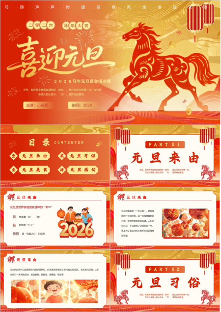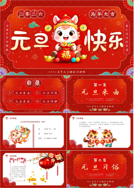 2026唐装小马元旦联欢PPT