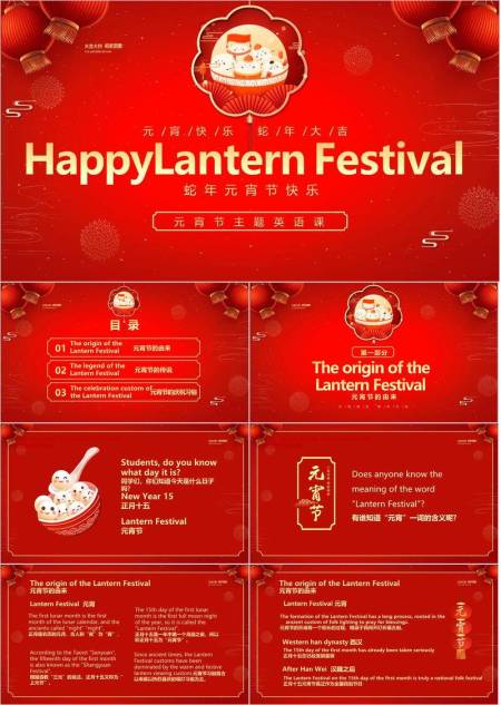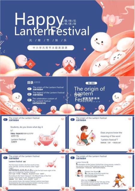 花窗猫头鹰汤圆船元宵英语课件PPT